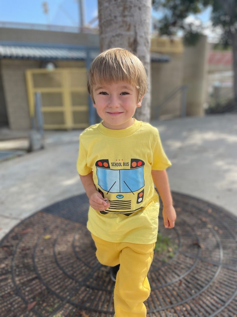 W tym roku pojechalismy po dynie do Original Farmer’s Market, gdzie Popi pobiegal sobie troche po sianie, a Timmy udekorowal mala dynie farbkami. W przedszkolu Timmy przebral sie za zolty autobus szkolny i zbieral Halloweenowe jajka z niespodziankami w srodku, ale tylko fioletowe, bo Timiego ulubiony kolor to fioletowy.