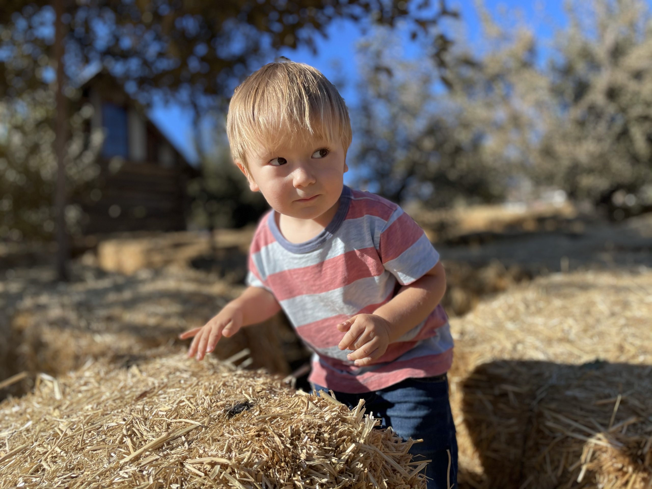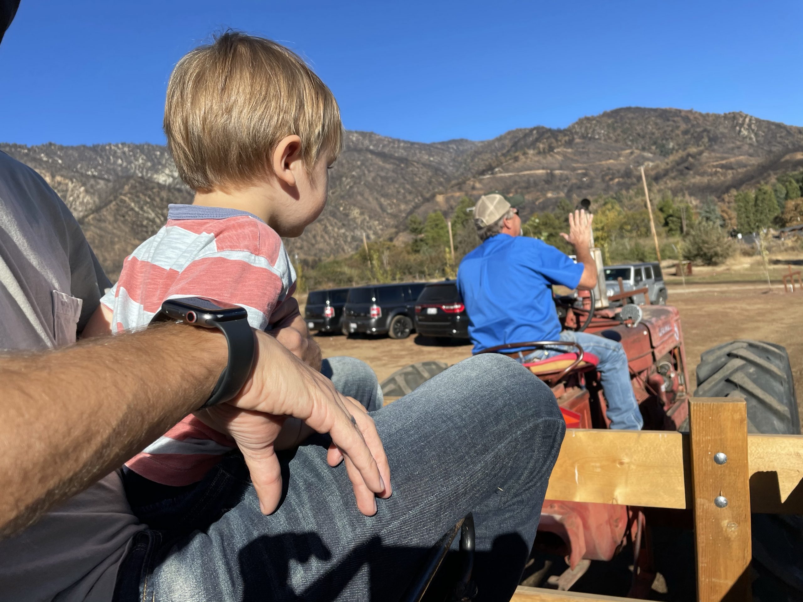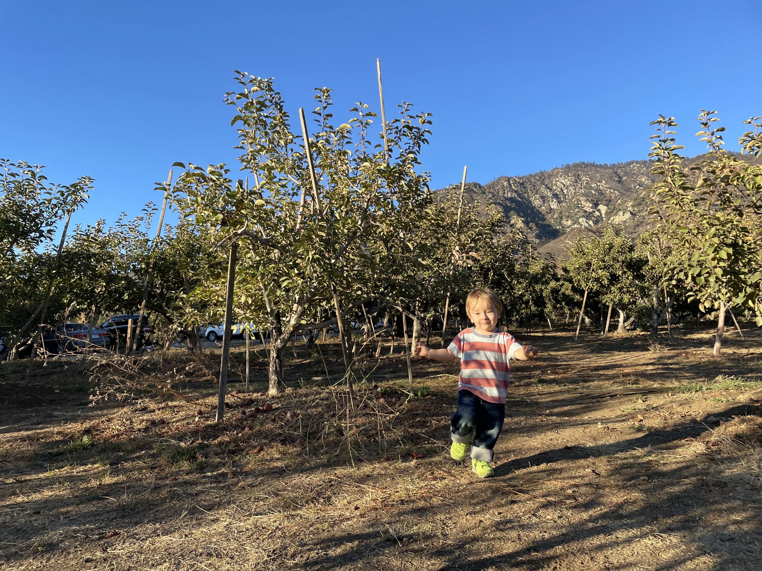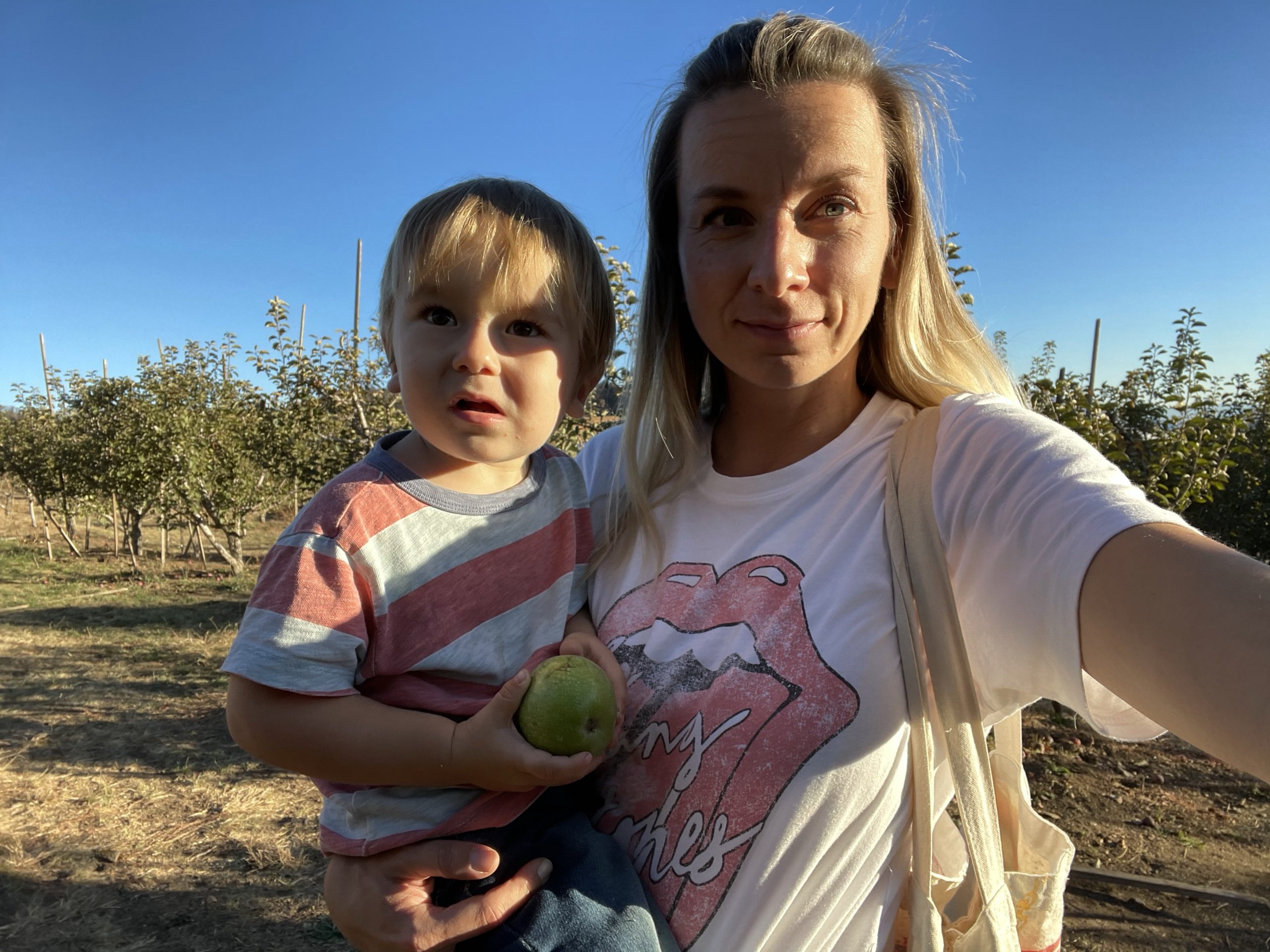 Przejechaliśmy się też traktorem i udało nam się zerwać chyba ostatnie jabłko z jedynego drzewa, na którym jeszcze były owoce. Następnym razem wybierzemy się o parę tygodni wcześniej.