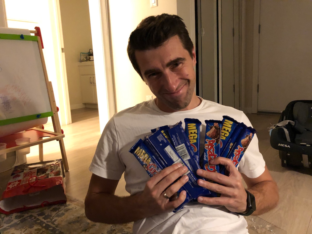 Timo dostał od Babci Halinki (Babci Nuny) książki sensoryczne, które bardzo lubi skrobać, a mama z tatem dostali tonę słodyczy.