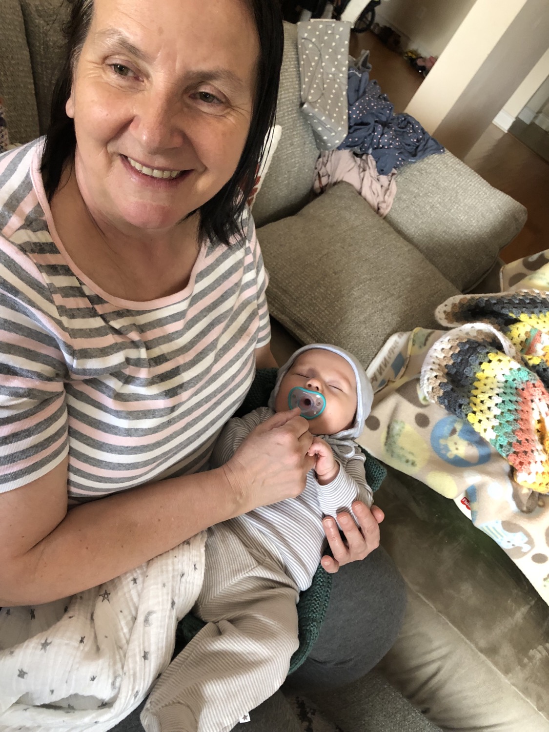 Jak Timotek mial 6 tygodni przyjechała do nas babcia. Babcia zakochała się w Timotku od pierwszego wejrzenia. Zaraziła nas od razu piosenką, która bardzo przypadła Timo do gustu (i która nie raz uratowała nas w ciężkich momentach) a mianowicie “Przyjechały misie“. Przywiozła też z sobą ręcznie robiony kocyk.