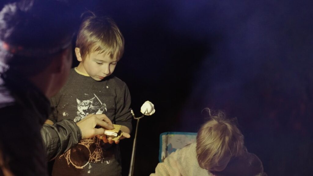 Wybraliśmy się po raz pierwszy z dziećmi na kemping. Kupiliśmy namiot, kuchenkę gazowa i nawet rozkładany stolik. Pomimo, ze była to wiosna, w nocy spaliśmy pod trzema warstwami koców i śpiworów. Wieczorem zrobiliśmy ognisko i nasz polskie kiełbaski kupione w Wholefoods zrobiły furorę. Dzieci natomiast zajadały się smorsikami-morsikami.