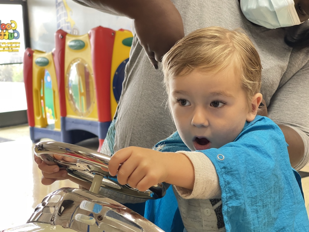 Timmy po raz pierwszy poszedł do fryzjera. Wybrał sobie stacje samolotowa i wrócił z profesjonalna chlopczykowa fryzura. Dostał w nagrodę balonika i lizaka 😁