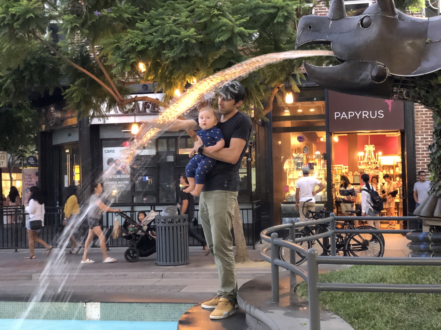 Dziś był dzień pełen wrażeń. Rano zaczęło się od grania na bębenku i cymbałkach, poprzez chodzenie w basenie, BLW lunchu a na końcu spacerze po 3rd Street Promenade w Santa Monica. To było dobre zakończenie weekendu.