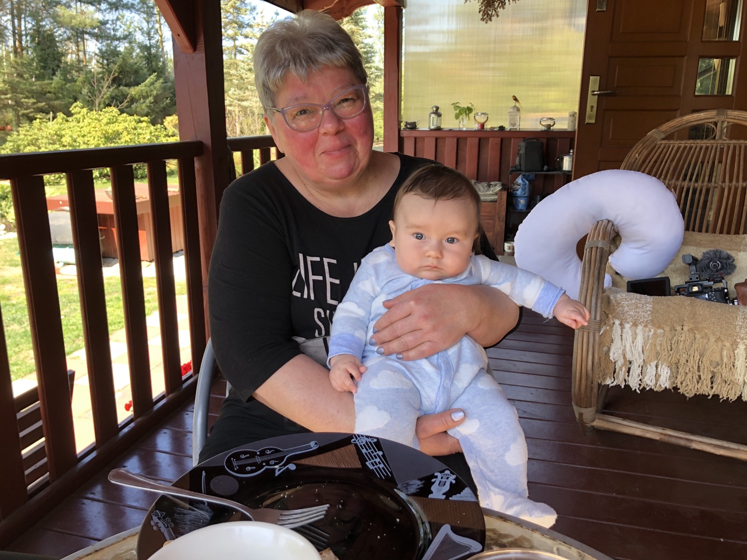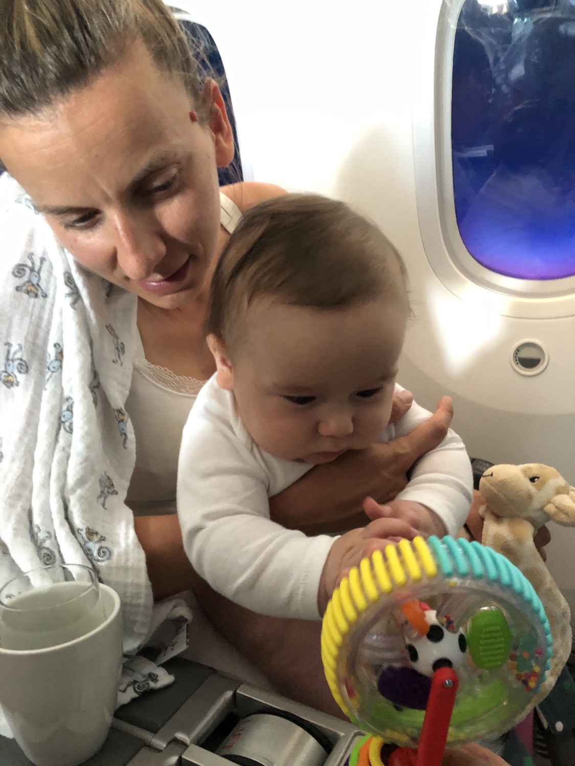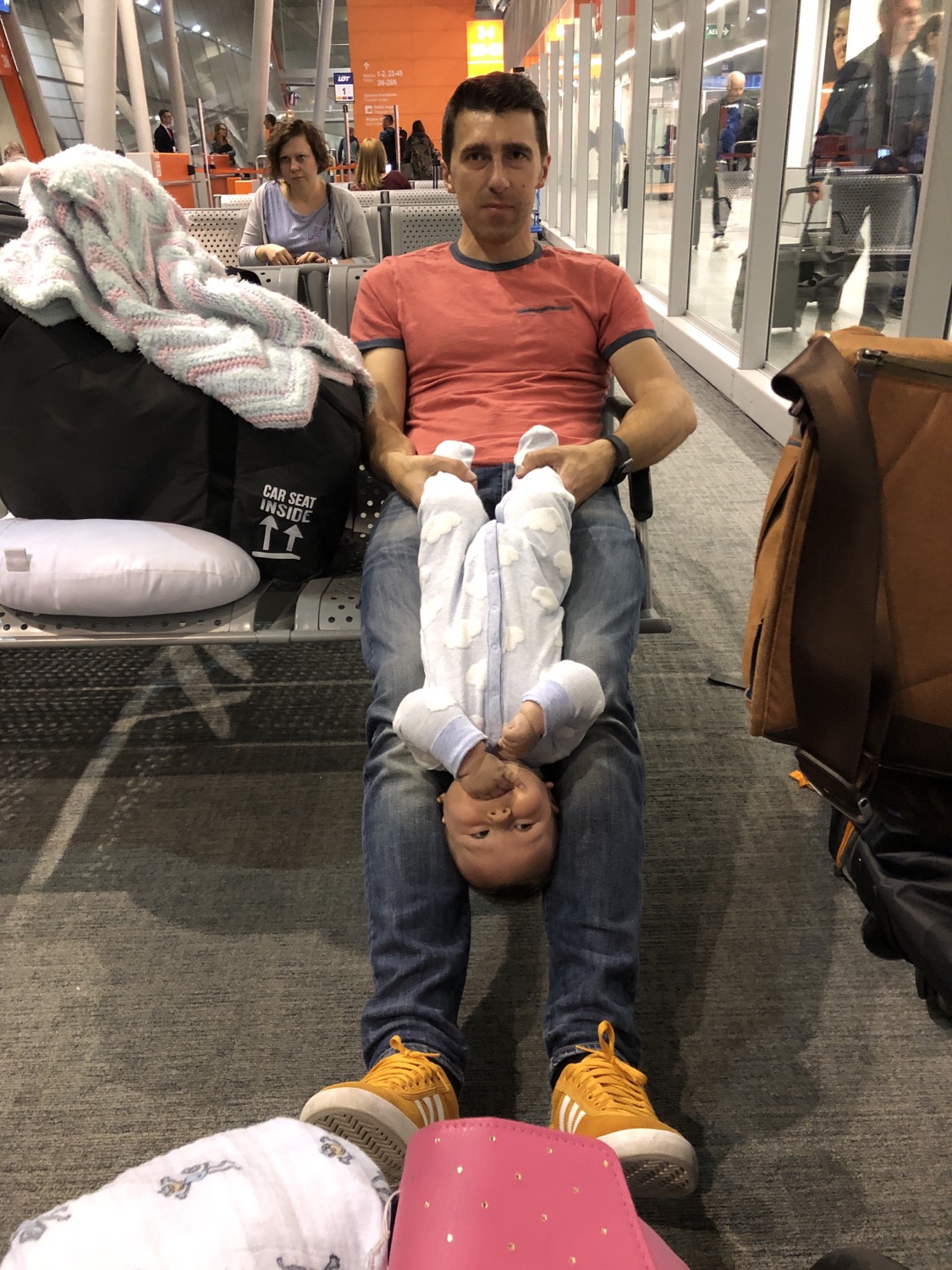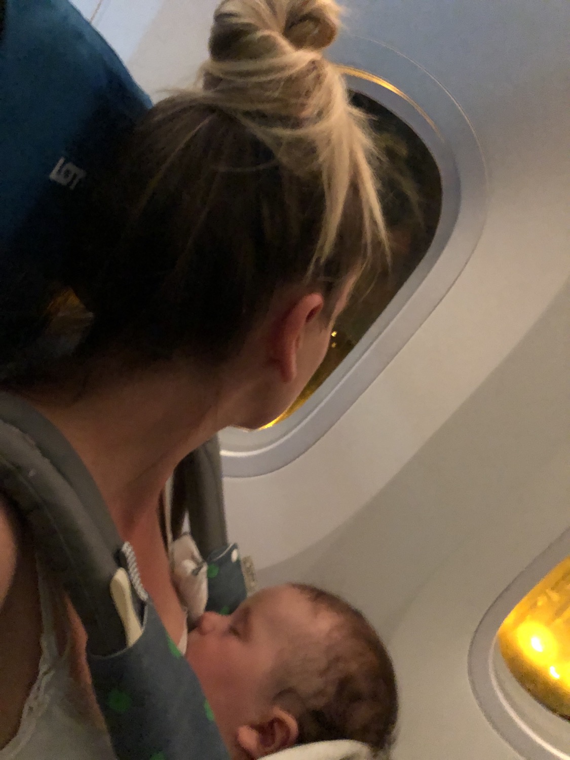 Podróż do Polski przebiegła całkiem sprawnie (pomijając ilość tobołów). Timotek był bardzo cierpliwy, spał w swoim samolotowym łóżeczku 9 z 11 godzin. Stewardessa dała nam nawet dwa papierowe kubki do zabawy i fajny śliniaczek „Lotek”. Timo miał jeden drobny epizod płaczu, ale widocznie nikomu na pokładzie to nie przeszkadzało, bo dostał dużo pochwał od wychodzących pasażerów.