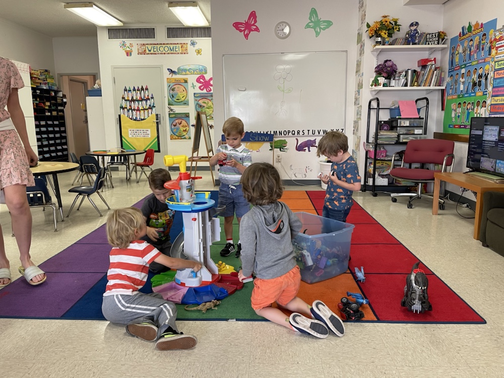 Na początku każdego dnia Timmy wybiera sobie krzesełko przy stole, przy którym będzie jadł lunch, po czym rzuca się w wir zabawek i tyle go widzieli 🙂 Na 10 minut przed końcem wszyscy śpiewają pożegnalna piosenkę i mogą wybrać sobie zwykła wersje piosenki albo śmieszna wersje. Bye bye Timmy, bye bye Timmy, bye bye Timmy, it’s time to say goodbye.