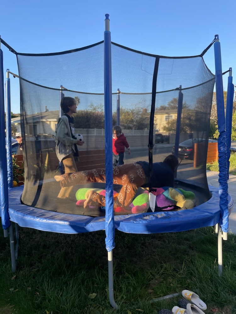 Czasem po przedszkolu chodzimy poskakać sobie trochę na trampolinie u cioci Maji. Timmy najbardziej się cieszy jak dołącza do niego Lani i Kaj.