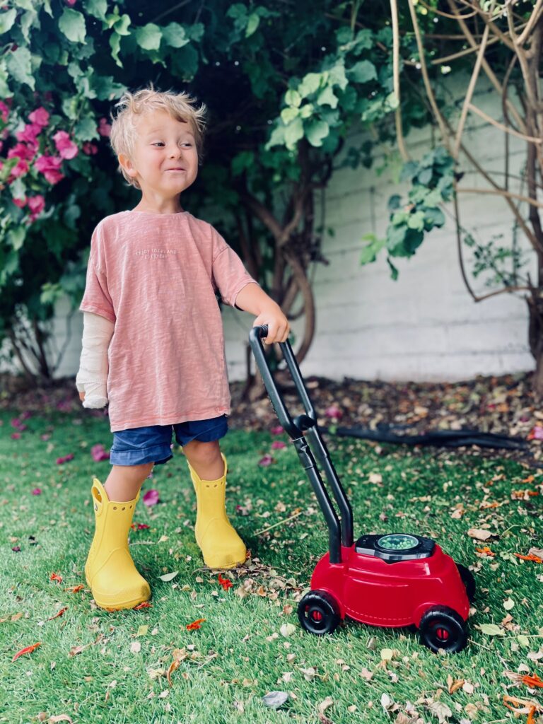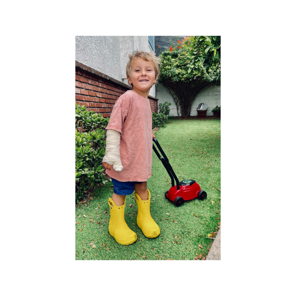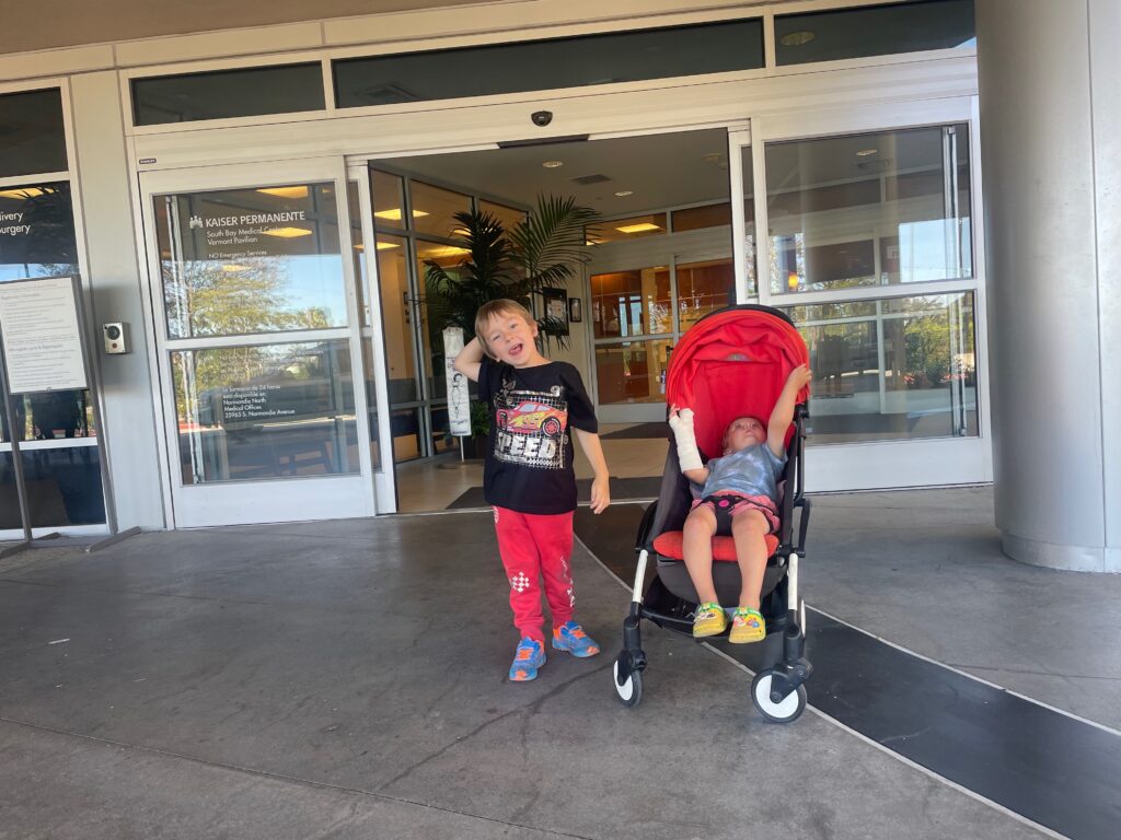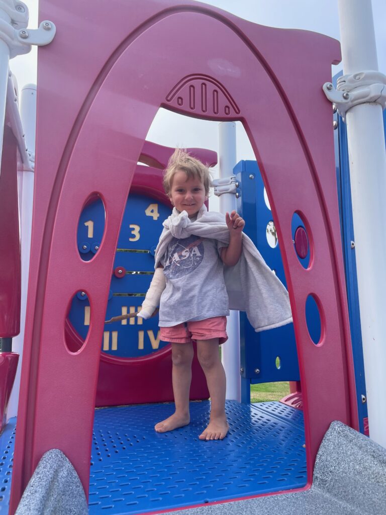 Ollie bawił się ciężarkiem, który spadł mu na palec. Po zrobieniu rentgena okazało się, ze jest troszeczkę skruszony. W Kaiserku założyli mu taki połowiczny gips.