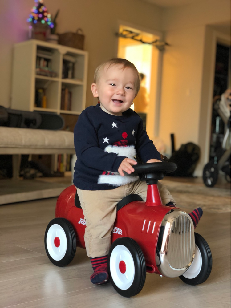 Timo dostał pod choinkę od wujka Kuby i cioci Darii czerwoną wyścigówkę !